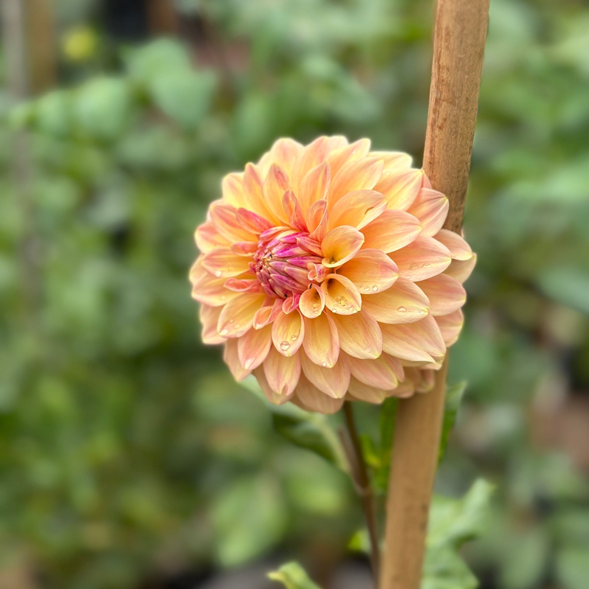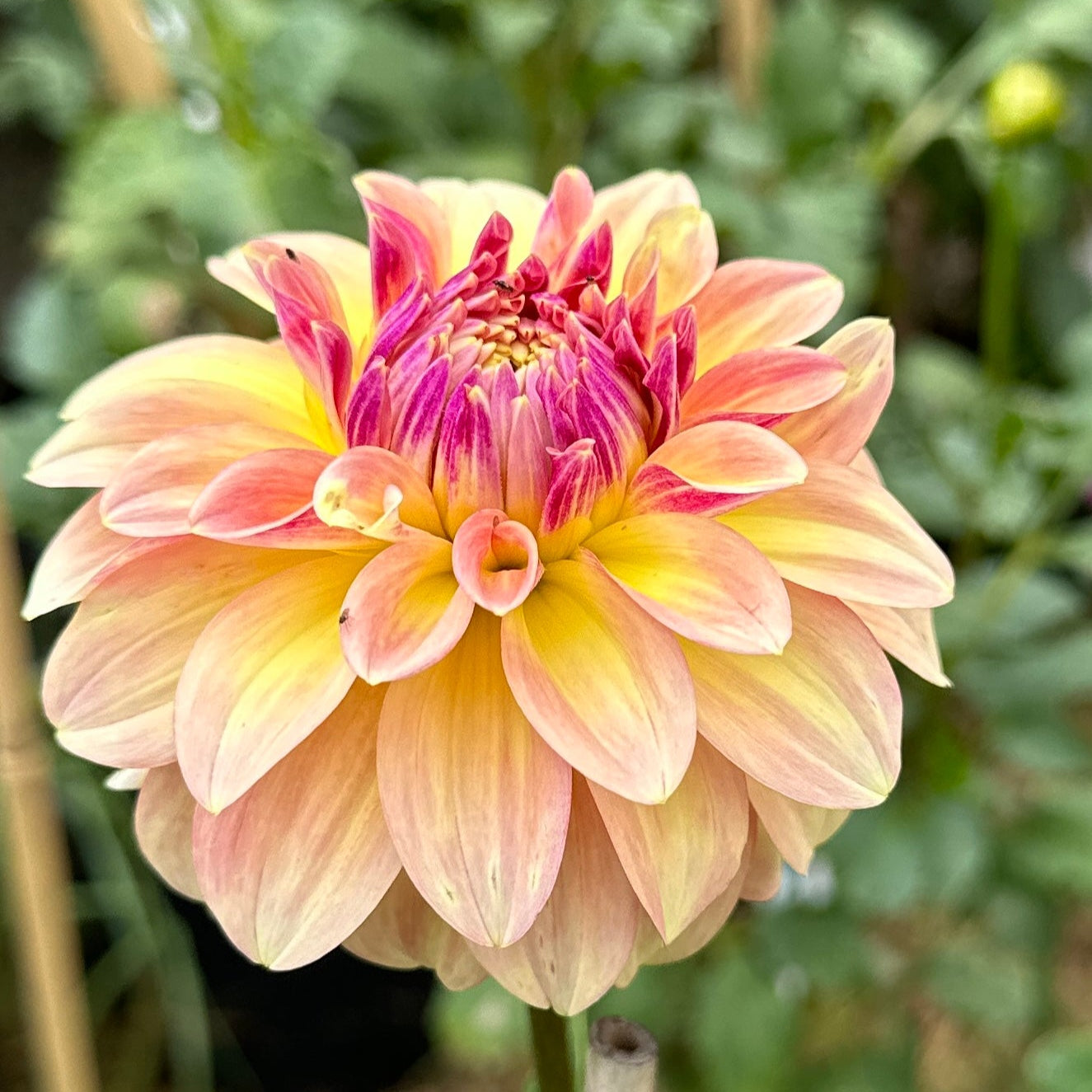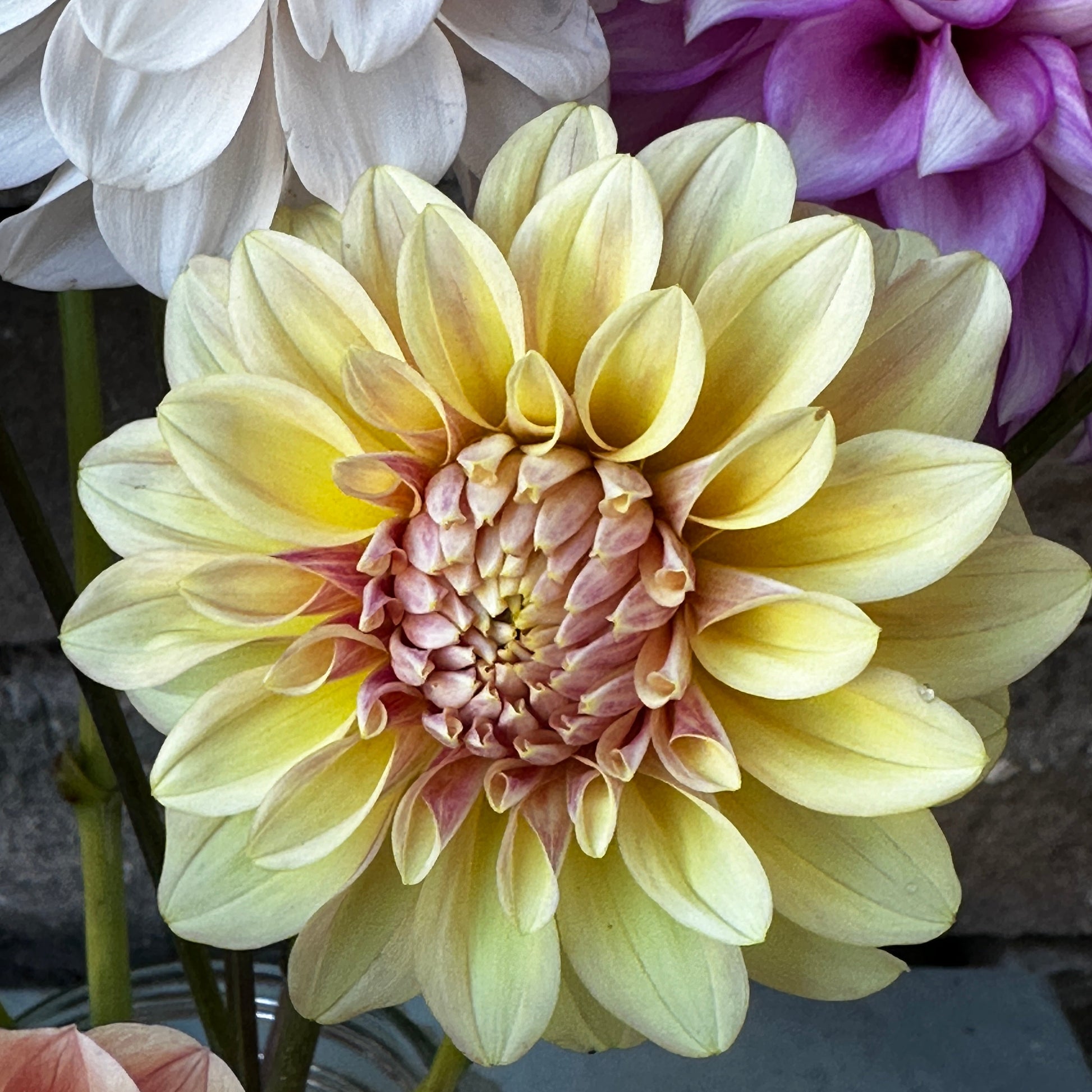 Surprisingly gorgeous with a pinker center to it’s more light yellower edges. Weather definitely did seem to encourage lighter blooms. Miss Amara is a small light blend formal decorative that produces 3-3.5' tall plants for us and decent cutting stems.