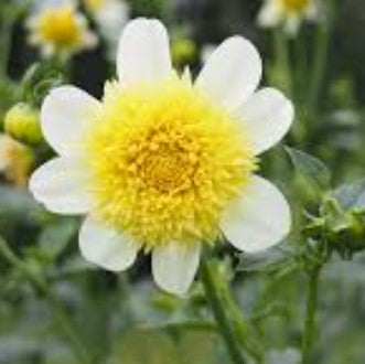 What a lovely and whimsical anemone form dahlia with creamy white petals and a golden yellow center from the amazing Steve and Sandy Boley. Please note that anemone form dahlias typically have a shorter 3-4 day vase life, so they may work best as event or garden flowers. These grow about 4-5'.