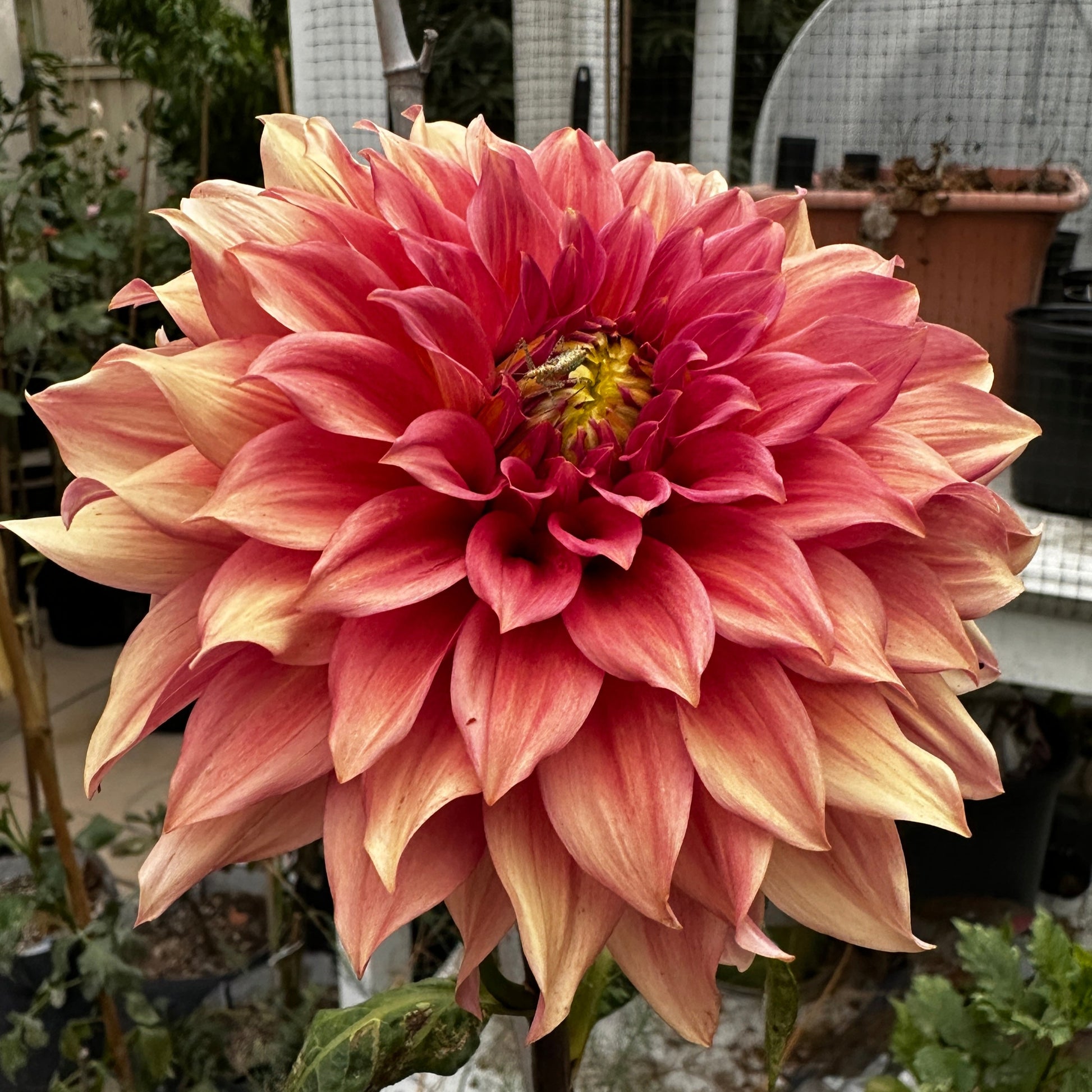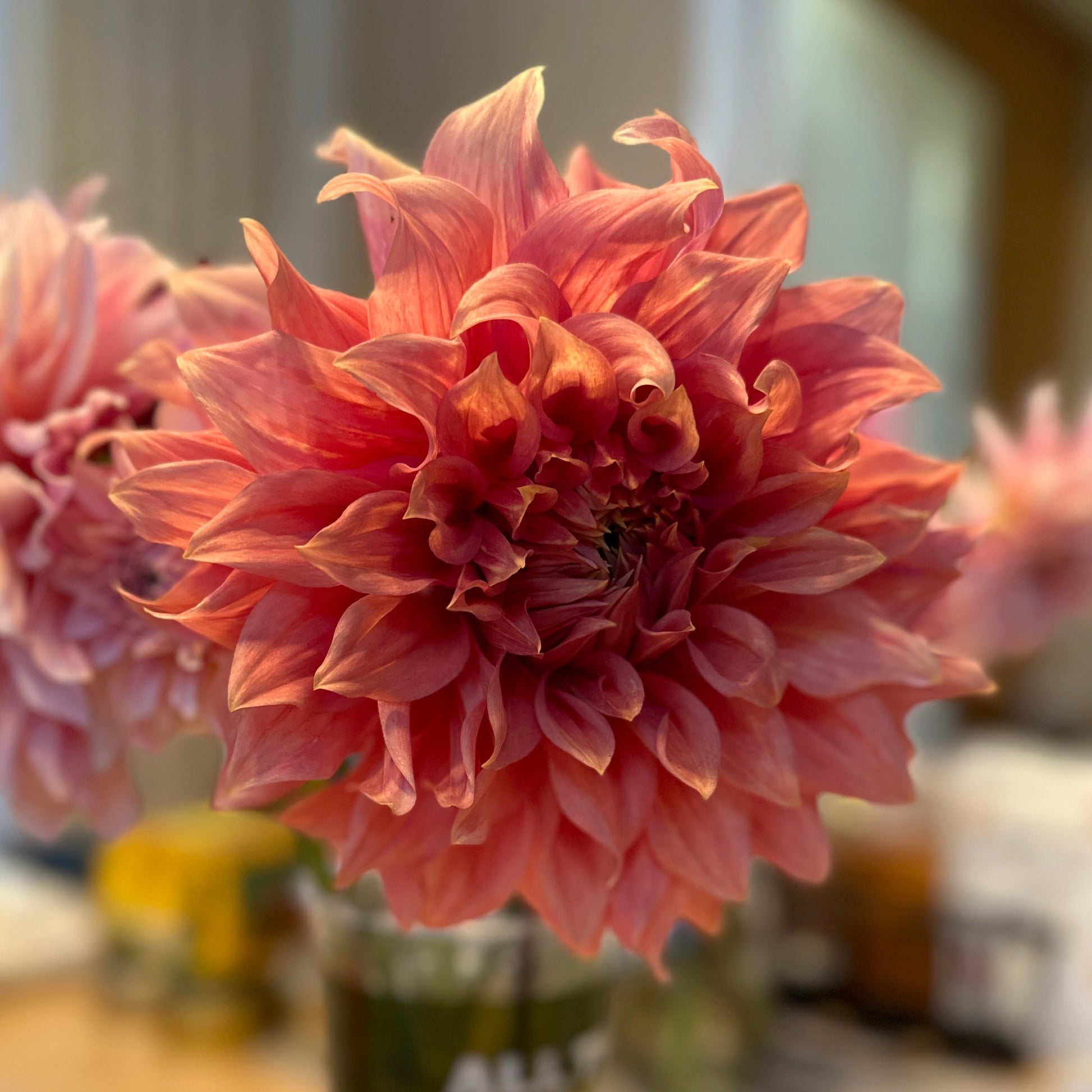 Sierra Glow is a gorgeous bronze Informal decorative, that depending on the weather produces some more pink tons. For a large (8-10") bloom, it was quite productive for us and really stood out in arrangements. She will do better in a bed than pots (at least in our experience) and definitely seemed heat tolerant. I recommend early planting if you're growing in a warm weather region, to maximize your bloom count.